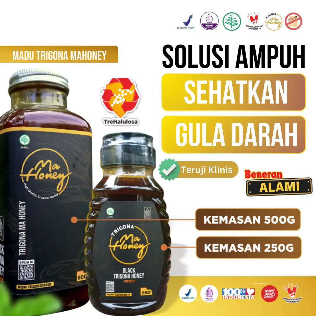 Ma Honey bersumber dari lebah Trigona/ Lebah tanpa sengat, dengan karakteristik yang khas. madu ini 100% murni diperoleh dari lebah yang mengkonsumsi nektar bunga multi flora hutan tropis indonesia dan dikombinasikan dengan propolis yang merupakan bahan alami dengan beragam senyawa aktif alami/ fitokimia yang bersifat antibiotik, antimikroba, antivirus alami yang dikumpulkan oleh lebah dari tanaman sekitar.